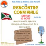 Cette rencontre est placée sous le signe du dialogue, de l’écoute et de la convivialité. Venez y nombreux, membres, sympathisants ainsi que tous Burundais désireux de partager ensemble ce moment de solidarité.