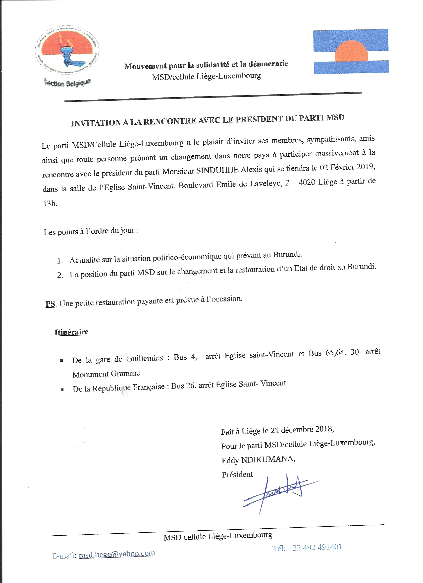 Vérité – Humilité – HumanitéRencontre avec le Président du Parti MSD à Liège