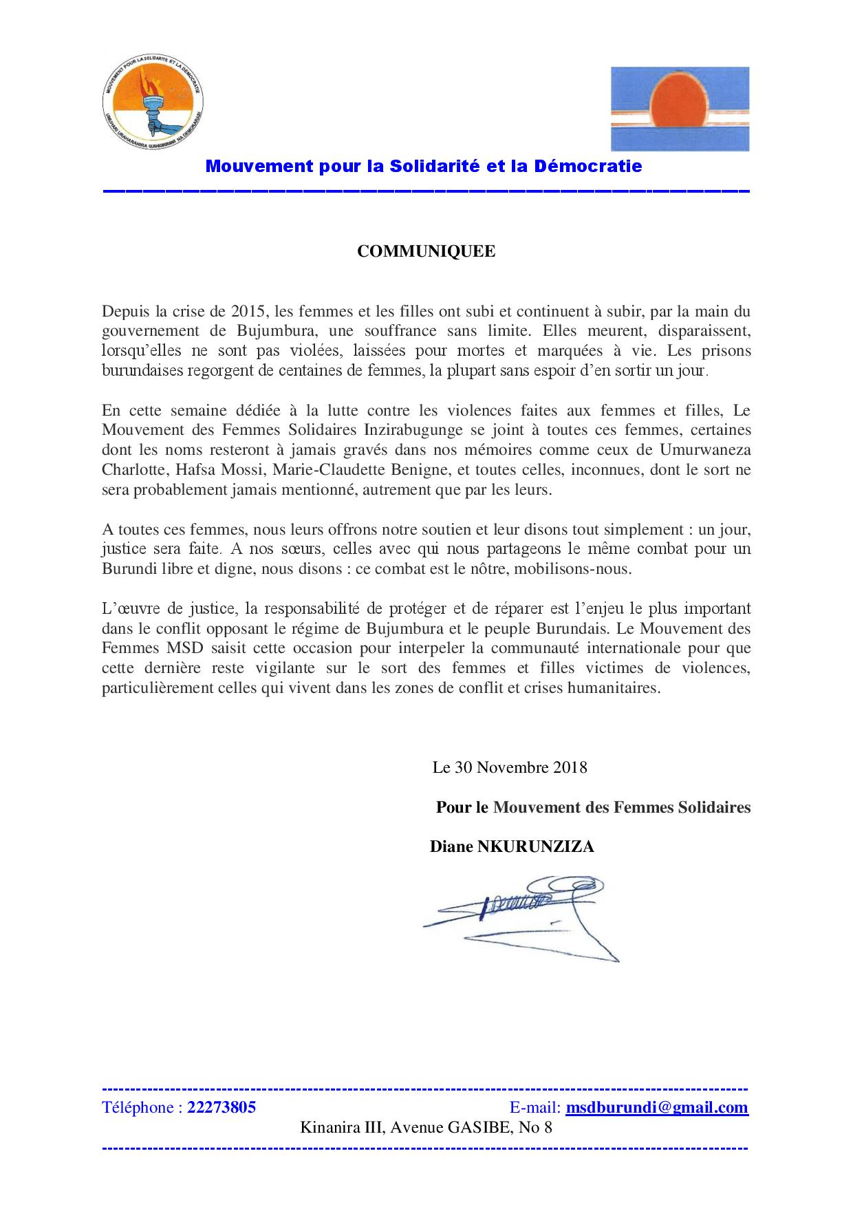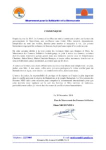 Semaine dédiée à la lutte contre les violences faites aux femmes et filles – Communiqué du MFS